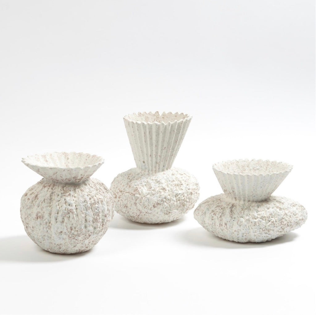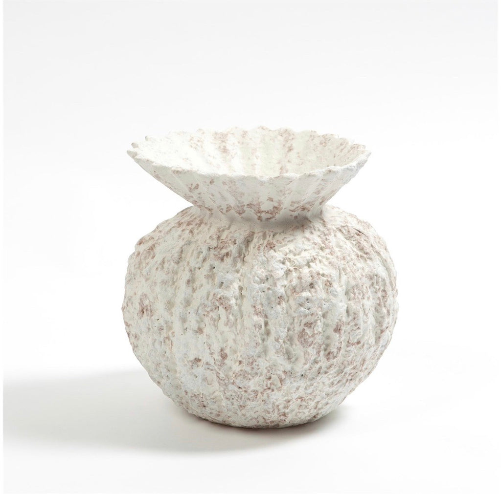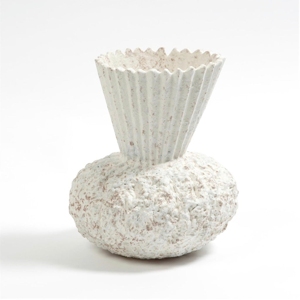 Like an ancient artifact dug up from the earth, the Vilette vase references archeology, ancient treasure, and the patina of time. This beautiful textured vessel is perfect for florals, greens, or alone. It works as a single standalone statement piece or in a curated collection.